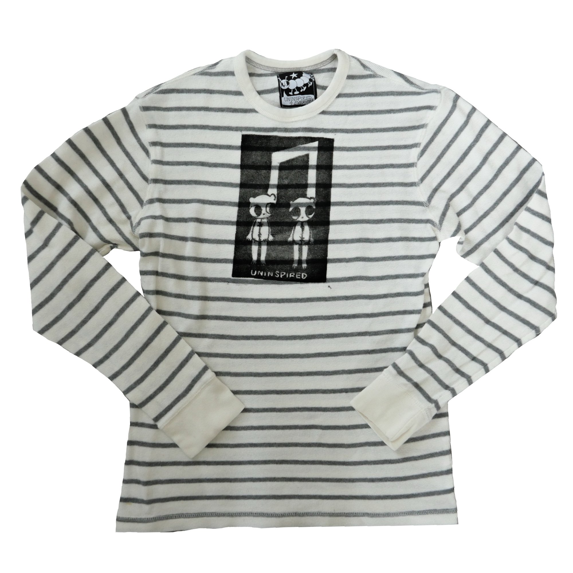 cream and grey striped long sleeve with block printed design