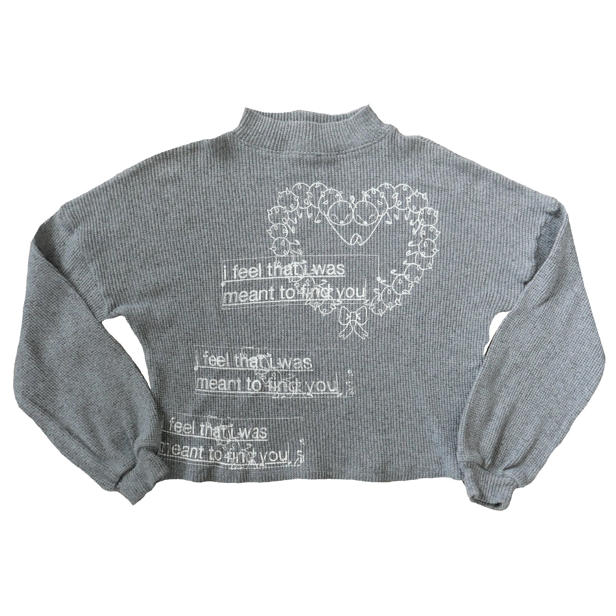 grey cropped mock neck sweater with screen printed design